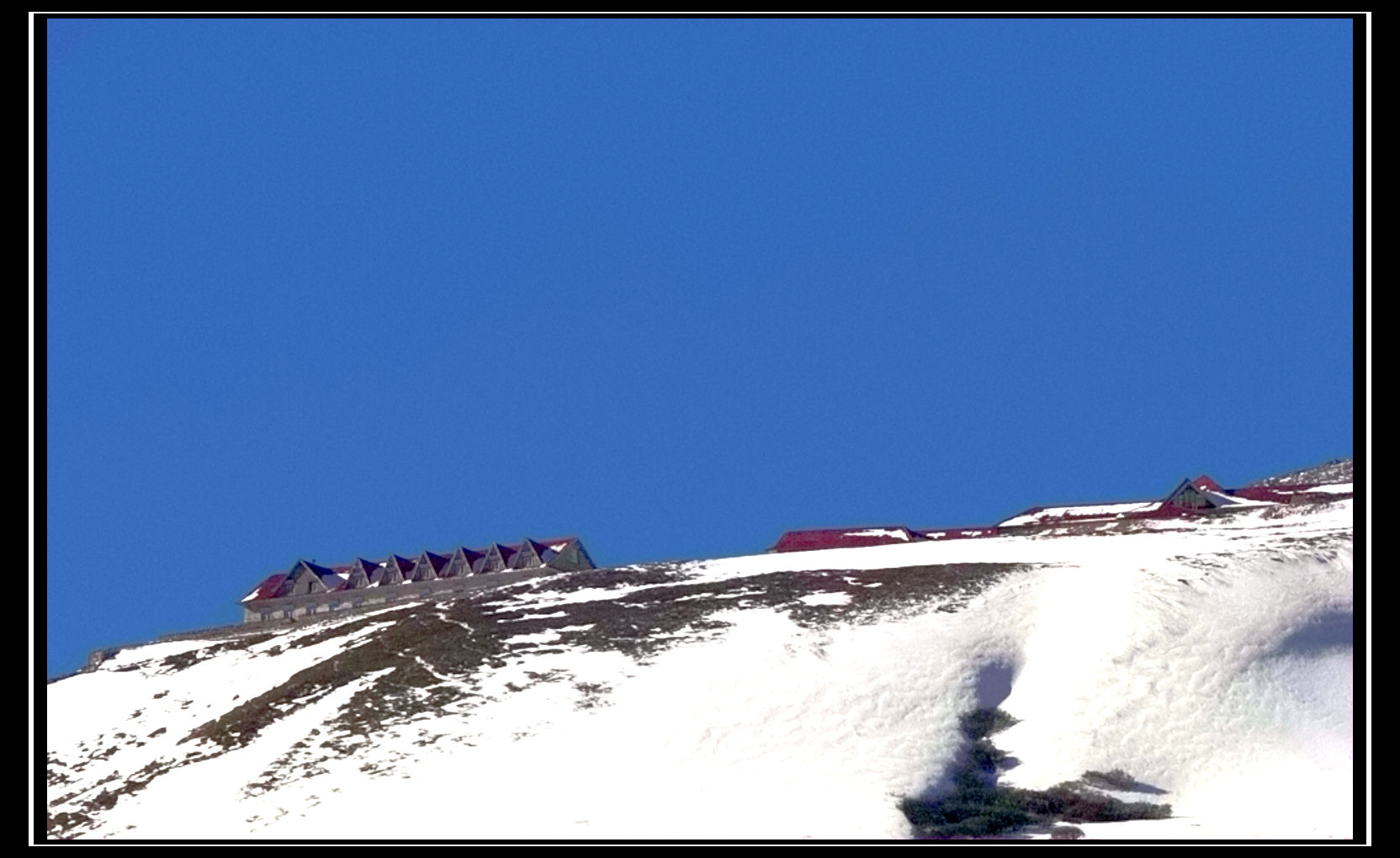 背夫远远指着Kong De峰山脊说Hotel,起初只看到皑皑白雪,根本找不到这建筑。拿镜头拉近了,拍出来,再拉大了看,终于看清了它。