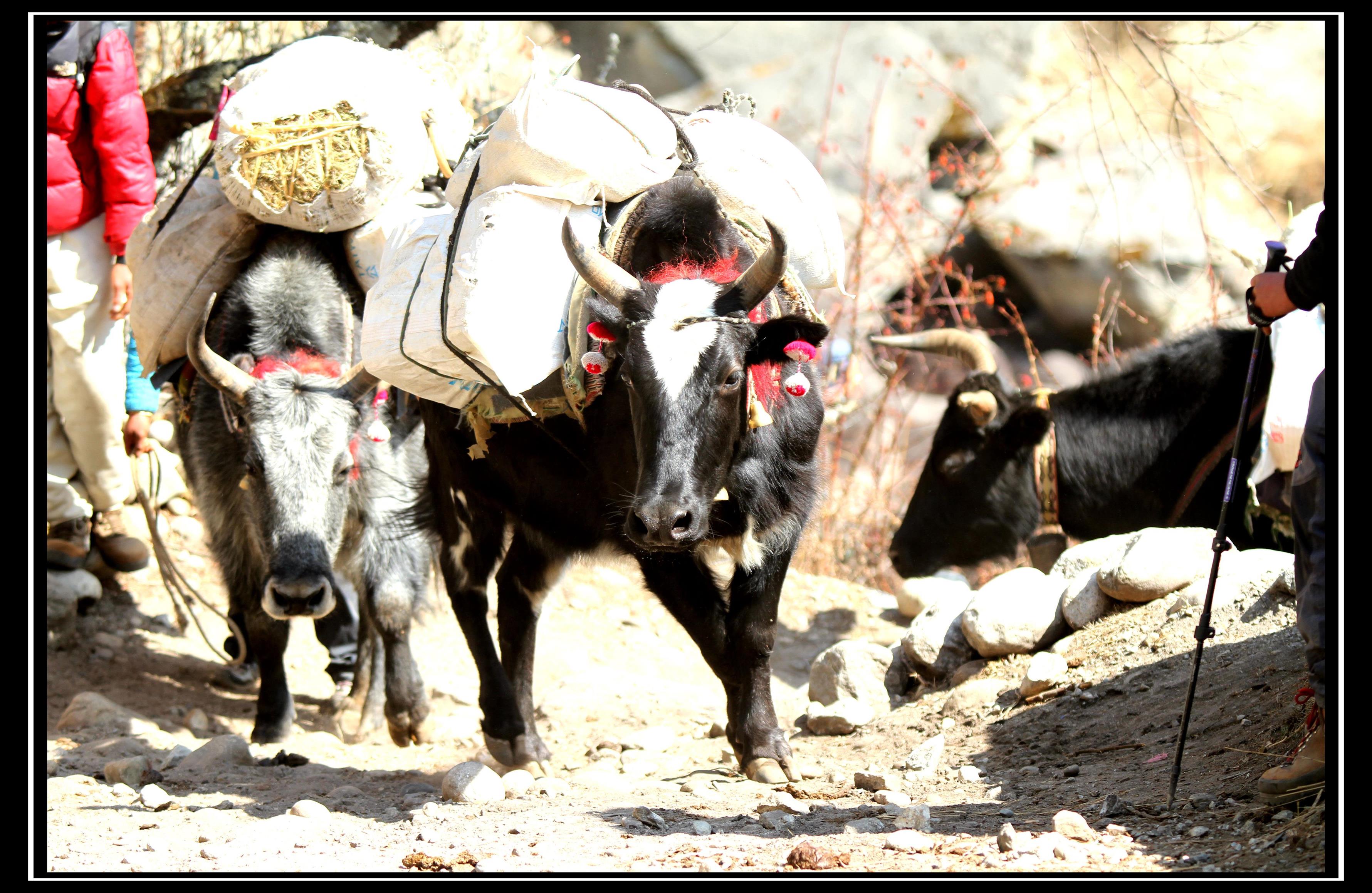生在尼泊尔,人也辛苦,牛也辛苦。相对轻松一些的是赶牦牛的牛夫,也不用鞭,用竹棒或者木棒毫不怜悯地抽打牦牛,有时甚至随手捡一块石头砸在牛身上。