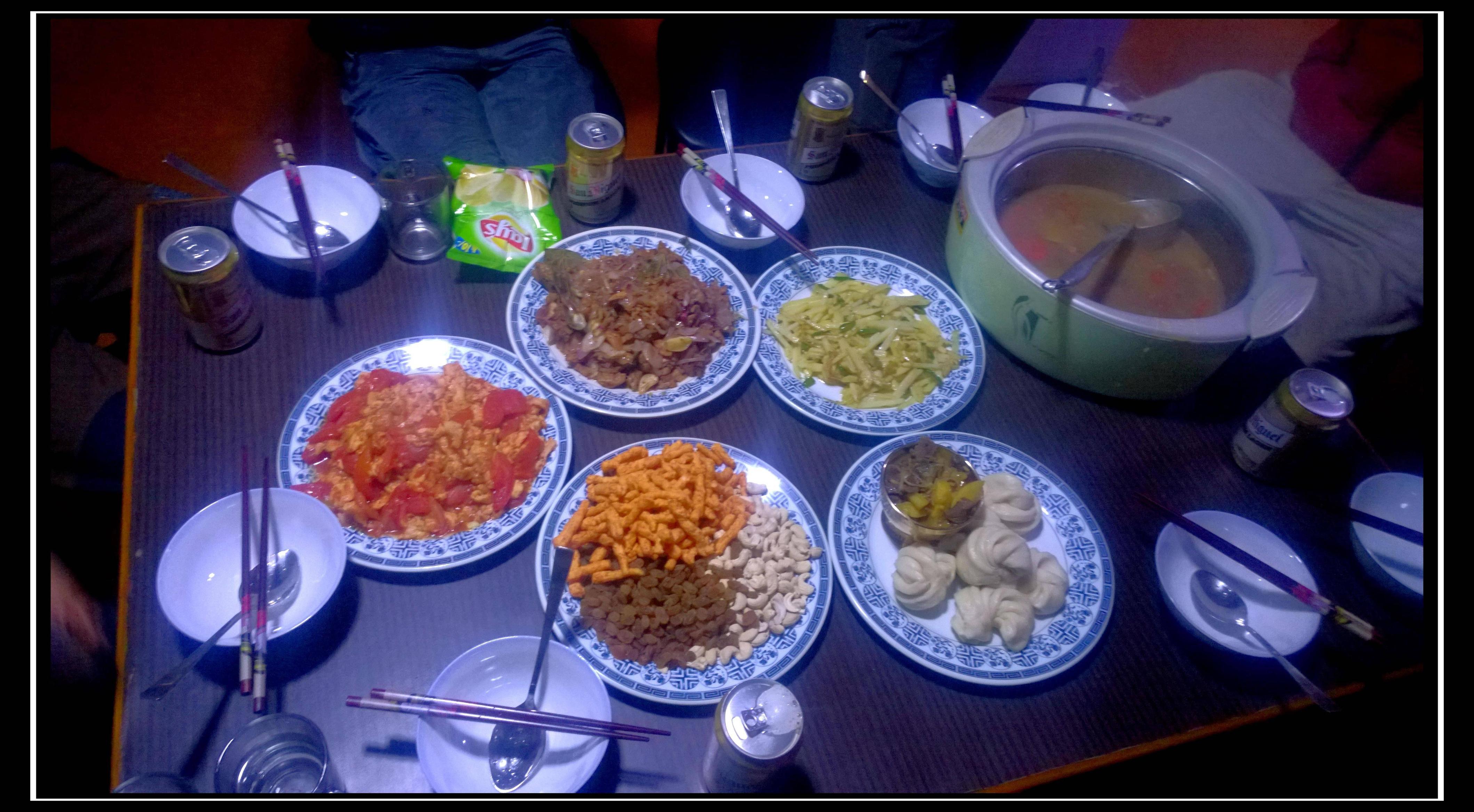 我们的年夜饭以及第二日在机场。7个中国同胞在Lukla凑团过年,简简单单几个菜,有胜于无。