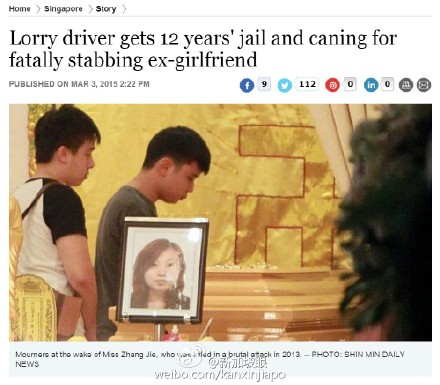 冰是睡着的水 • • 58533 次浏览【罗厘司机192刀捅死前女友】来自中国的萧桂良(31岁)和张洁(24岁)在新加坡通过网络认识并相恋同居,分手后男方因看到女方很快有了新欢而怀疑前女友劈腿,在前女友回到二人住处取走遗留物品时,捅192刀造成前女友死亡。这事发生在2013年7月,事发时二人居住在蔡厝港。男方本周二被判监12年+6下鞭刑