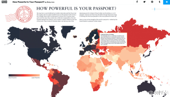 冰是睡着的水 • • 58504 次浏览how powerful is your passport?"图中颜色越深的国家护照免签国越多。第一梯队全是欧洲,173国免签。美帝172.日本170。亚洲的新加坡167,南韩166,马来西亚163.为什么马来西亚那么多免签国啊?中国进步很大。