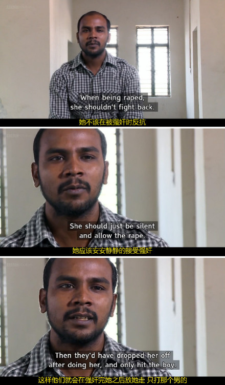 BBC的良心纪录片印度的女儿India's Daughter 2014 B站:L【纪录片】印度的女儿 India's Daughter 2014【大家字幕组】 此纪录片记录了2012年的德里公交车轮奸案,23岁的医科女生在车上遭轮奸和殴打最终因此死亡。该片已被印度禁播,理由是它让印度蒙羞。看完后真的很令人愤怒,尤其是印度男性对女性普遍的蔑视,甚至认为被强奸是女性的责任。