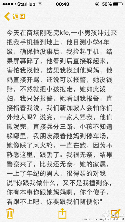 这种事情国内更多。这几天在上海吃饭遇到老头室内抽烟去跟他说他还“现在的年轻人啊”不理我,继续抽。不过国内有个好处是,他要不肯赔,你上去打一巴掌解解恨估计没什么大问题。新加坡你的问题就大了。 -