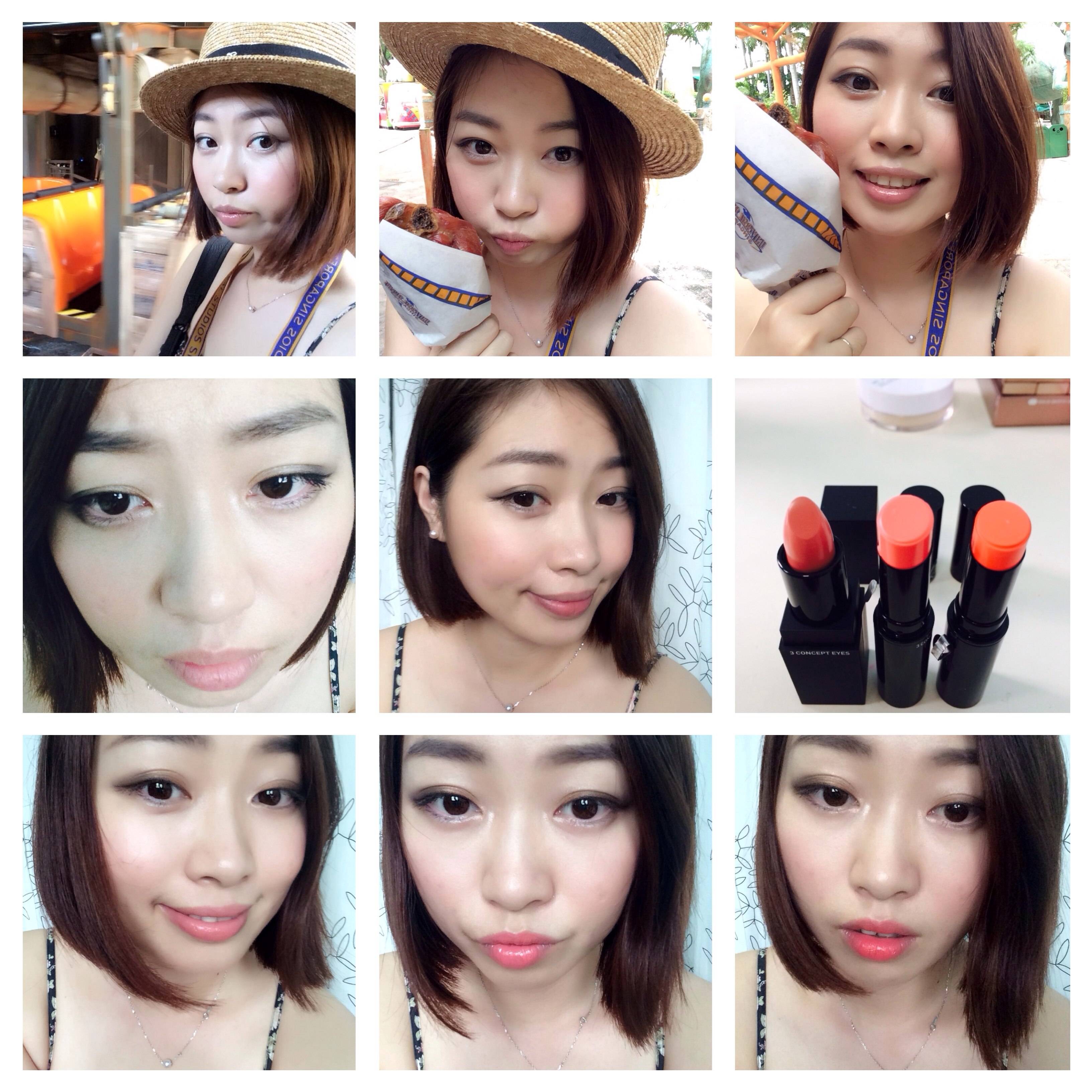 烈日炎热的玩了半天,又是水又是汗,头发都油了,眼妆都花了,唇彩也吃光了,可是连拍照花了20分钟仔细打造的底妆和腮红还纹丝不动的在脸上。回家后补了下眼妆,试了下新买的唇膏,整个人又活过来了。
