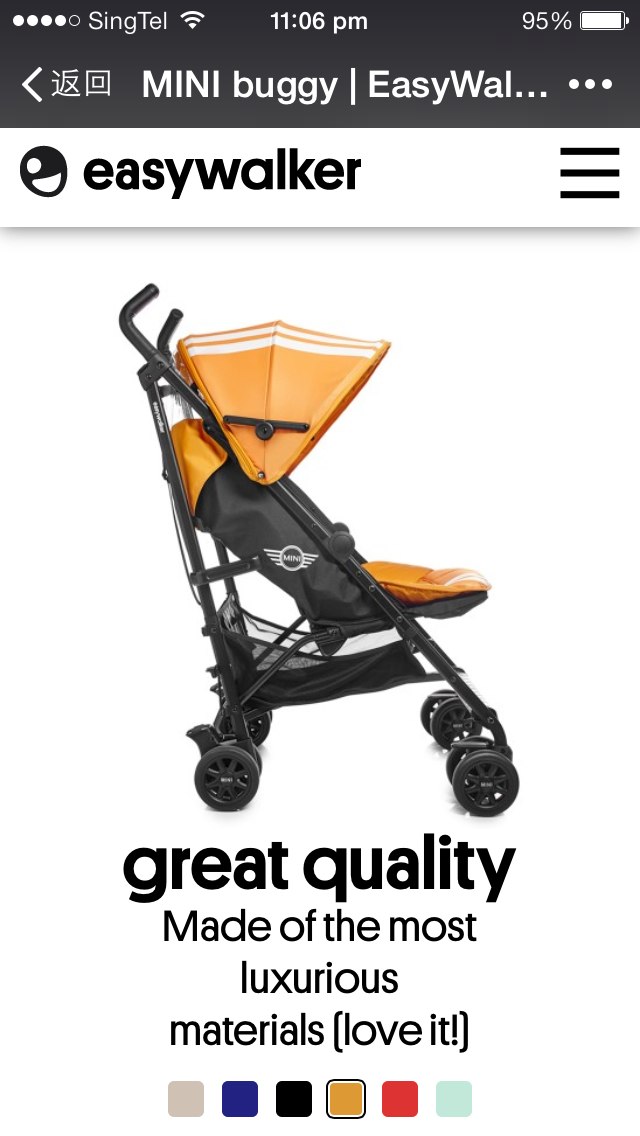 uncleshi • • 57322 次浏览宝宝4个月大了,我们近期打算买一架橘色的 easywalker mini buggy 伞车,想请问一下诸位达人这个牌子有没有推荐的海淘购物网站?万分感谢!