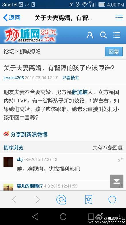 冰是睡着的水 • • 57041 次浏览中国女因所嫁的新加坡男自身条件糟糕,ICA 6年都不批她PR。PR先不说,LTVP快到延期前一个月该男特意不做工,担保人无工作无收入如何担保?5岁的智障儿子是新加坡公民,渣男离婚却要求要没有PR身份的妈妈带走孩子