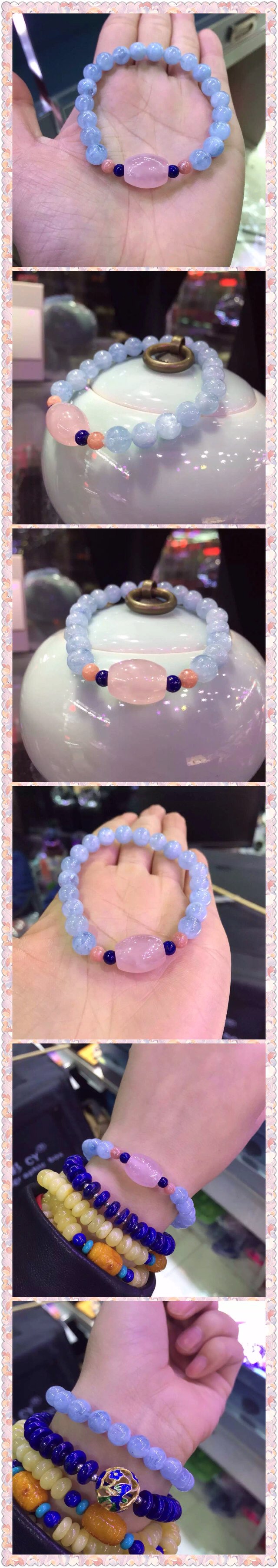 8MM海蓝宝搭配冰种马达加斯加粉晶价钱$49
