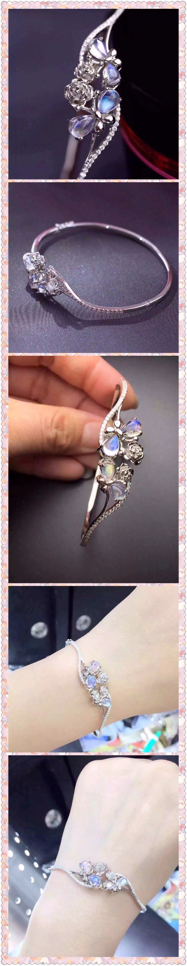 蓝月光925银手环,主石5*7,美美的哦!很清爽很漂亮上手[微笑]
