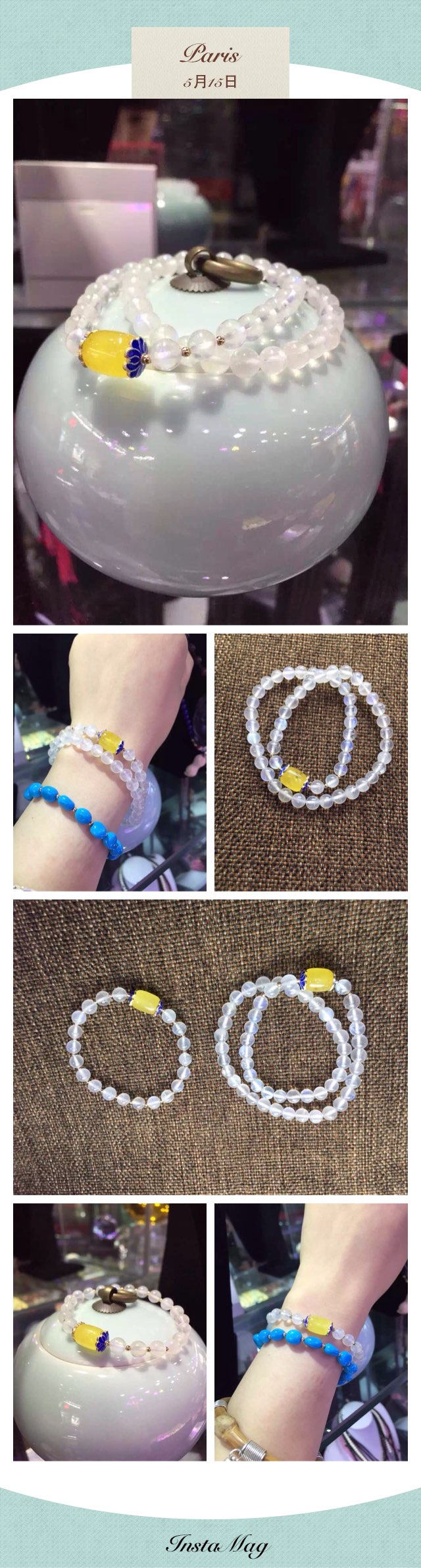 第一个是我最喜欢的月光石,5mm 5圈,可当项链,搭配青金石,石榴石,价钱-$42