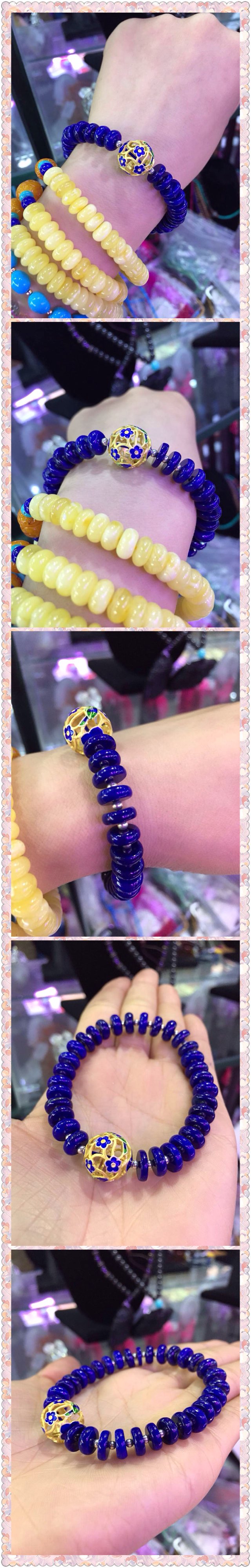 青金石搭配珐琅 超级好看[色][色][色]中间隔的银珠子[转圈][转圈]青金石好显皮肤啊