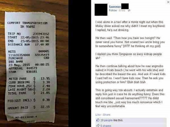 这位女郎在Facebook发帖说,她上车后,司机就问她男朋友呢?