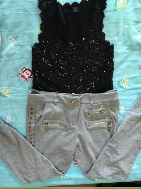 blingbling背心 灰色休闲长裤,超级显瘦,酷酷的,一套15.