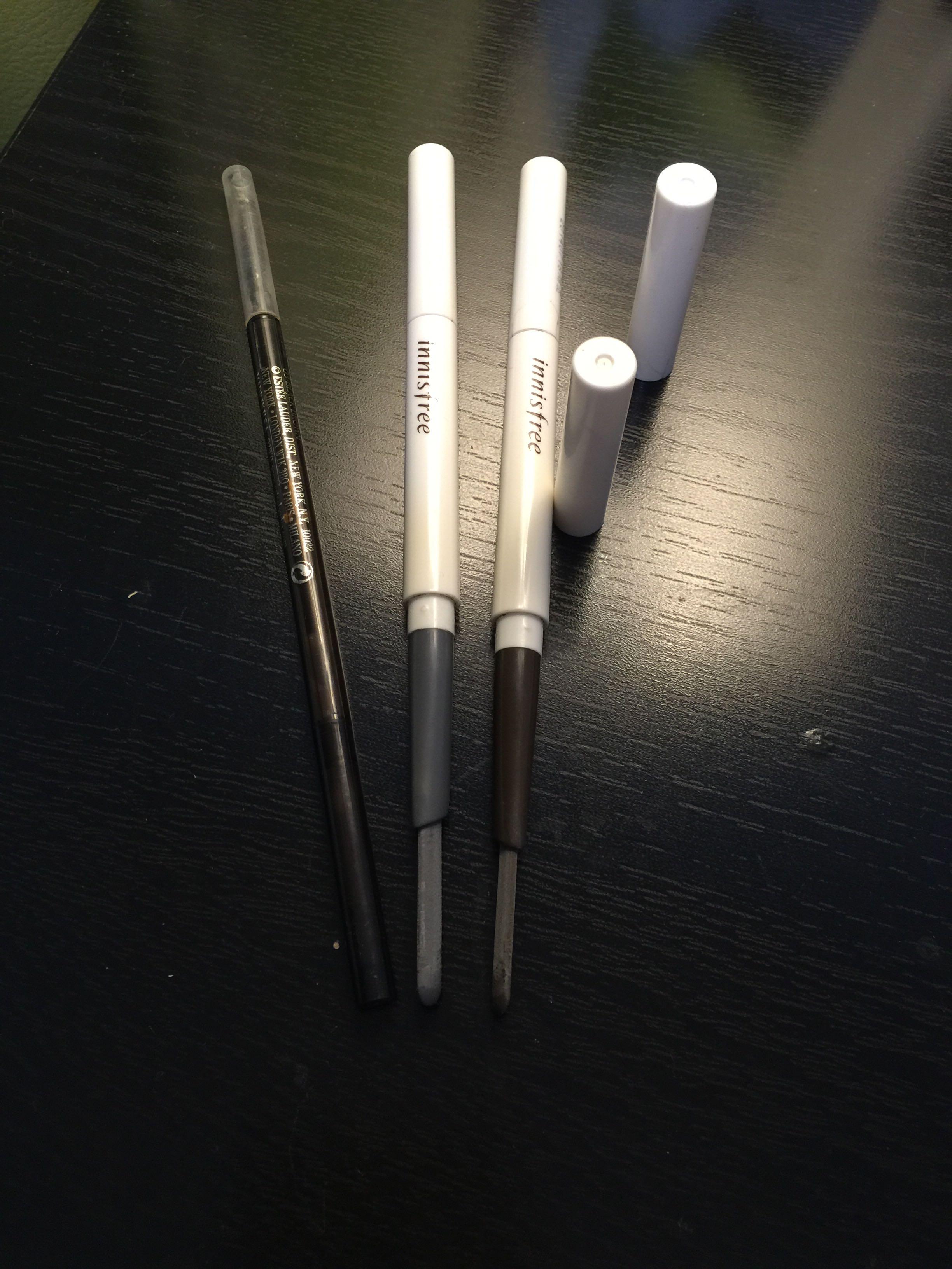 innisfeer ,雅诗兰黛眉笔innisfree 两个,用量如图,深棕色和灰色