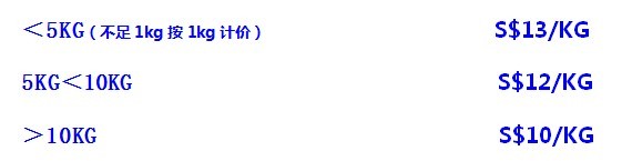 中到新是人民币价格,新到中是新币价格哦新到中普货5KG以下是13新,包邮国内的哦!中国到新加坡是人民币报价的,亲新到中普货5KG以下是13新,包邮国内的哦!中国到新加坡是人民币报价的,亲