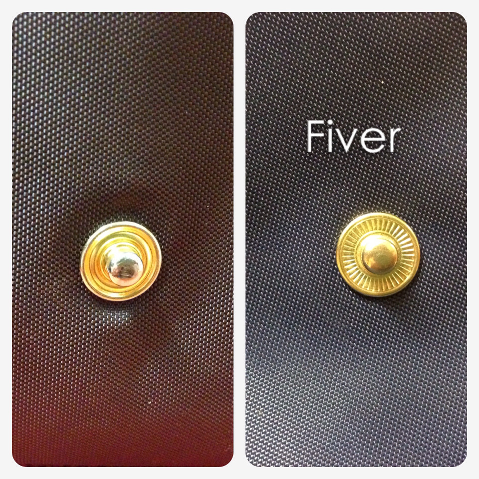 FIVER包包的摁扣上面雕刻的字母是“PRYM,6/4B,ORIGINAL"