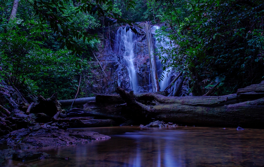 彩虹瀑布。这个时候当然不会有彩虹,就算是白天也没有,因为当天是阴天,山区还时不时下雨,所以我拍星轨的计划泡汤了。
