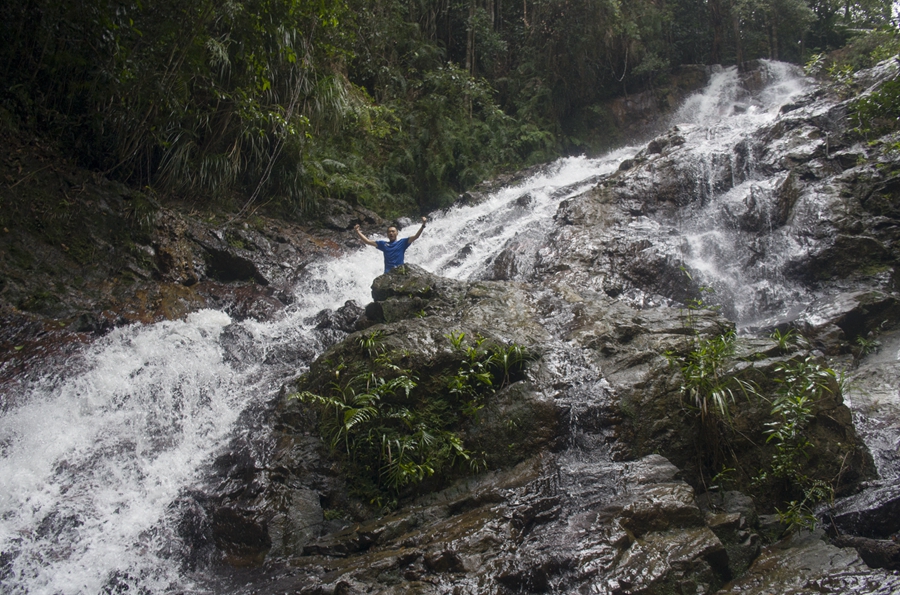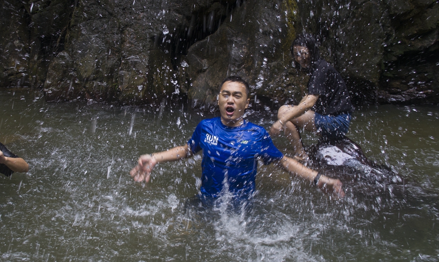 在这个水潭,我悲剧地沿着光滑的石头滑落水里,幸好落水处不深,赶紧站立起来检查相机。万幸水没来得及浸进去,还能开机还能拍,之后就放开了。