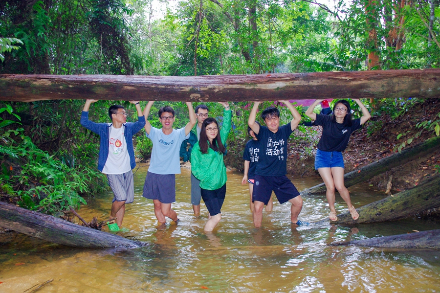 从一开始就要时不时涉水,因此穿溯溪鞋还是很有必要的,很多人后悔没有及时换鞋。另外着装最好都是速干的,不要棉质一无,很多同学到了营地都湿透了必须换衣服,我自己没换,体温没用很久就把衣服都烘干了。