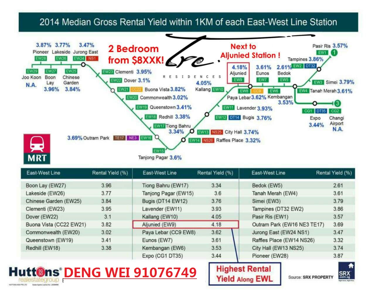 2014 新加坡东西地铁站1公里内公寓租金价格表