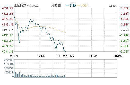 ♂龍泉☺ • • 55701 次浏览央行周末利好未能刺激 A 股大涨,今日两市大幅高开后急速跳水,沪指跌近 4%,两市超千股跌停。截至午间收盘,沪指跌 3.75% 报 4035.48 点;深成指跌 5.52% 报 13603.42 点。