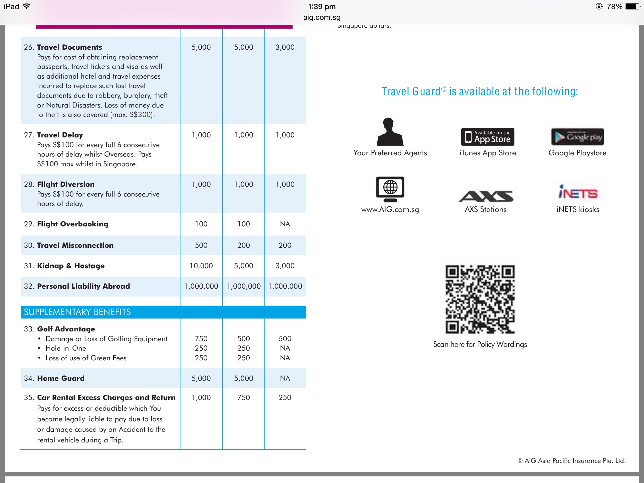 我看Citi的这个已经算银行卡里面给的旅游保险比较厚道了 第一张图是Citi的,后面是AIG自己的travel guard