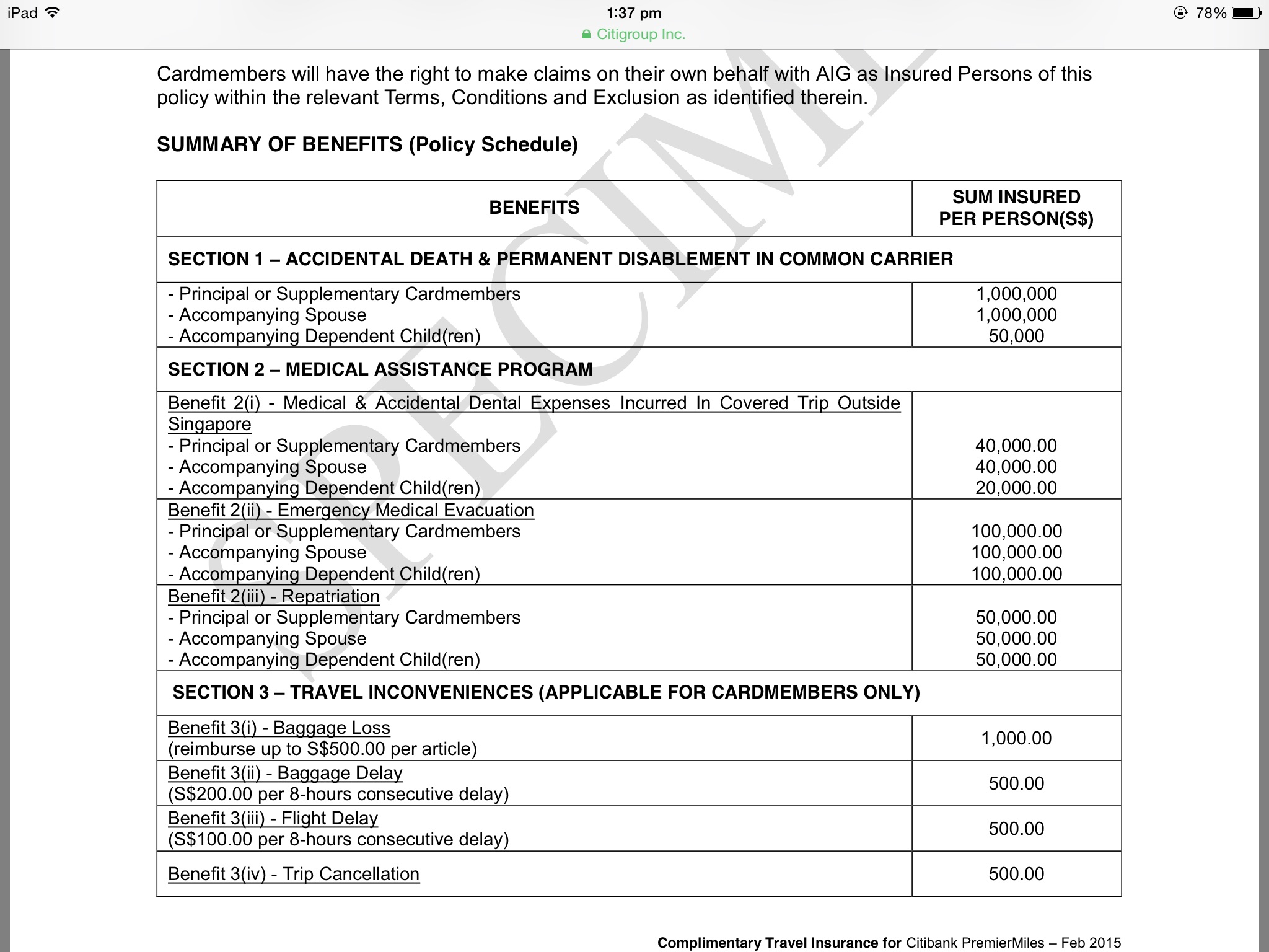 这个和普通的差别不大,除了oversea的medical expenses这么看来citi很厚道了。