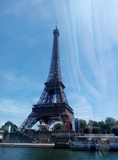 2)游览:鉴于是巴黎的旅游旺季,几大著名旅游景点那也是人满为患。门票一定提前网上预订,然后当天一定要早去。我们9点多到卢浮宫,没排队直接进入,12点多出来的时候门口已经排起长长的人龙。凡尔赛宫就更不用提了,9点多到那儿还排了两个钟头的队,宫门口的广场上都是满满的排队的人。艾菲尔铁塔是下午去的,之前提到了我没有订到官网的票而定了高价票,也因此因祸得福,我买的高价票是可以不用排队的。不过这只是不用排队搭乘去到二楼的电梯,从二楼登顶的电梯还是要排队,在这儿我们又排了差不多半个小时。登顶后的风景还是不错的,那天赶上了一个好天气,铁塔上俯瞰整个巴黎,漂亮!(注:现在巴黎铁塔仍是全法国最高建筑,在巴黎也未曾看到任何摩天大楼)