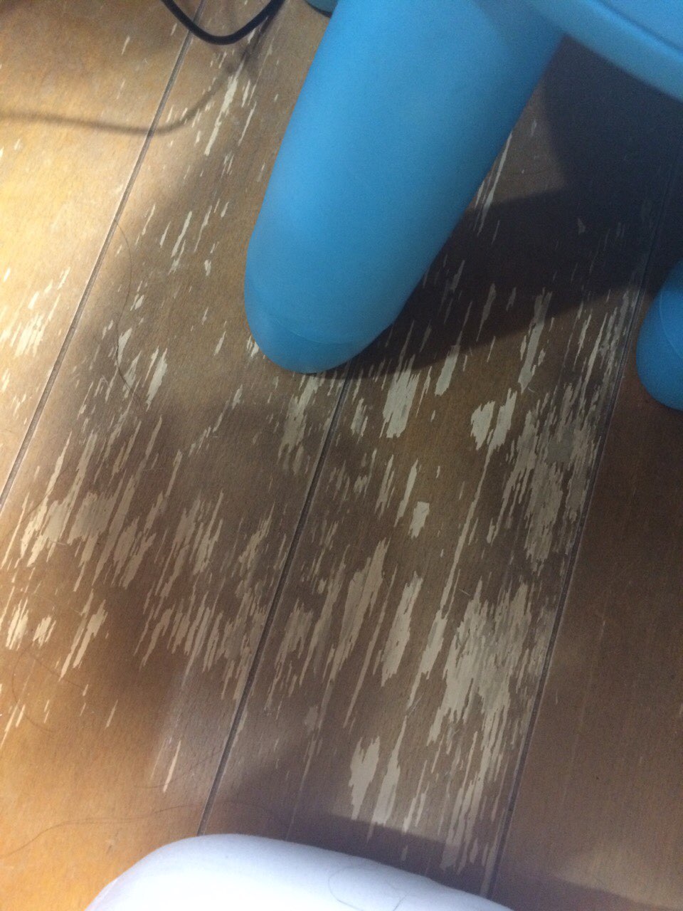 最近突然发现木地板掉漆起皮了…走一下脚底就会黏上几片,细细的,感觉像是木头的纤维。