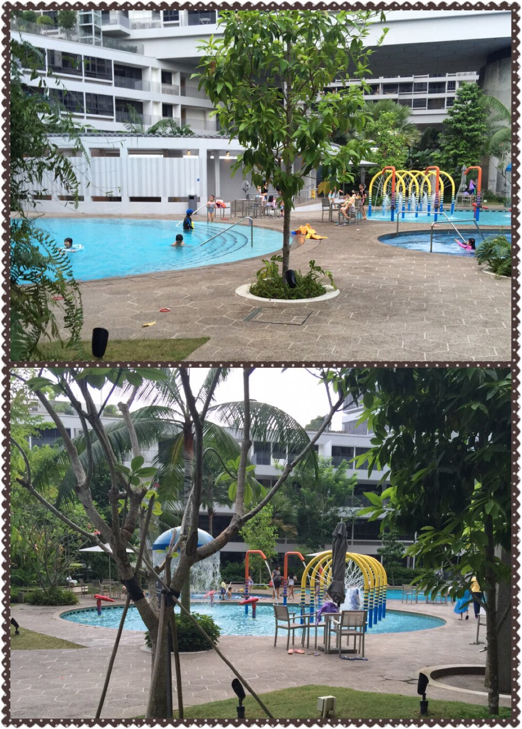 蓝色那一块有小孩玩的秋千啊滑梯跳床之类的,但这里白天就比较热因为没有遮挡物