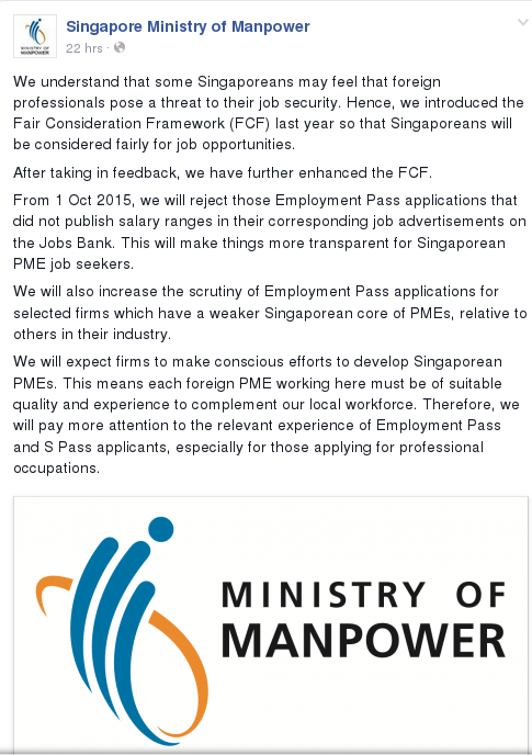 只针对EP如果公司要请外国人申请EP,就必须在jobsbank等广告2个礼拜,登广告后会有一个reference number和有效时间,申请EP的时候会需要填写这两个信息。不过公司大可以只是发个广告不用真的去找本地人,两个礼拜后就可以招外地人了。如果公司要请外国人申请EP,就必须在jobsbank等广告2个礼拜,登广告后会有一个reference number和有效时间,申请EP的时候会需要填写这两个信息。不过公司大可以只是发个广告不用真的去找本地人,两个礼拜后就可以招外地人了。