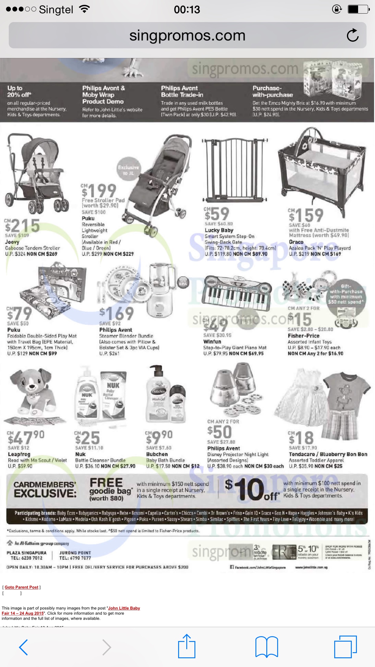 黄河水 • • 54475 次浏览最近关注的Avent blender bundle还蛮划算,169一套,包括一个blender,枕头和抱枕,一套餐具,三个储奶杯。会员超过100扣10块,超过150送价值80的礼包。所以这套加礼包159就拿下了。去Jurong Point的John little买的话可以无偿出借会员卡,我家就在JurongPoint 对面。