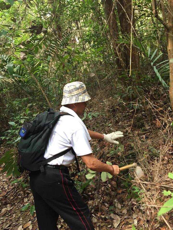 开山劈路不是那么容易的,这里是纯粹的热带原始雨林路况,到处是灌木丛林,不晒,但有点闷热,一路有很多刺。
