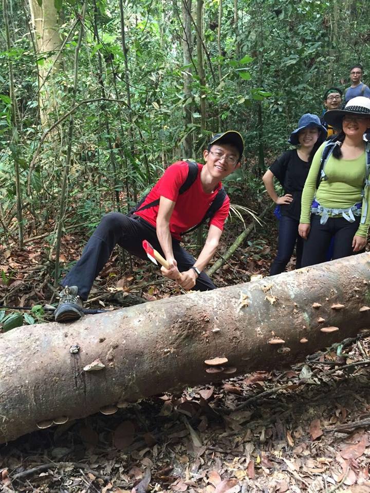 21位同学,在后半段路,度过了非常刺激的神社探险时刻,我们带了十八般工具,斧头,锯子,弯刀,大剪刀,利剪。。。开山劈路去日本神社遗址了。