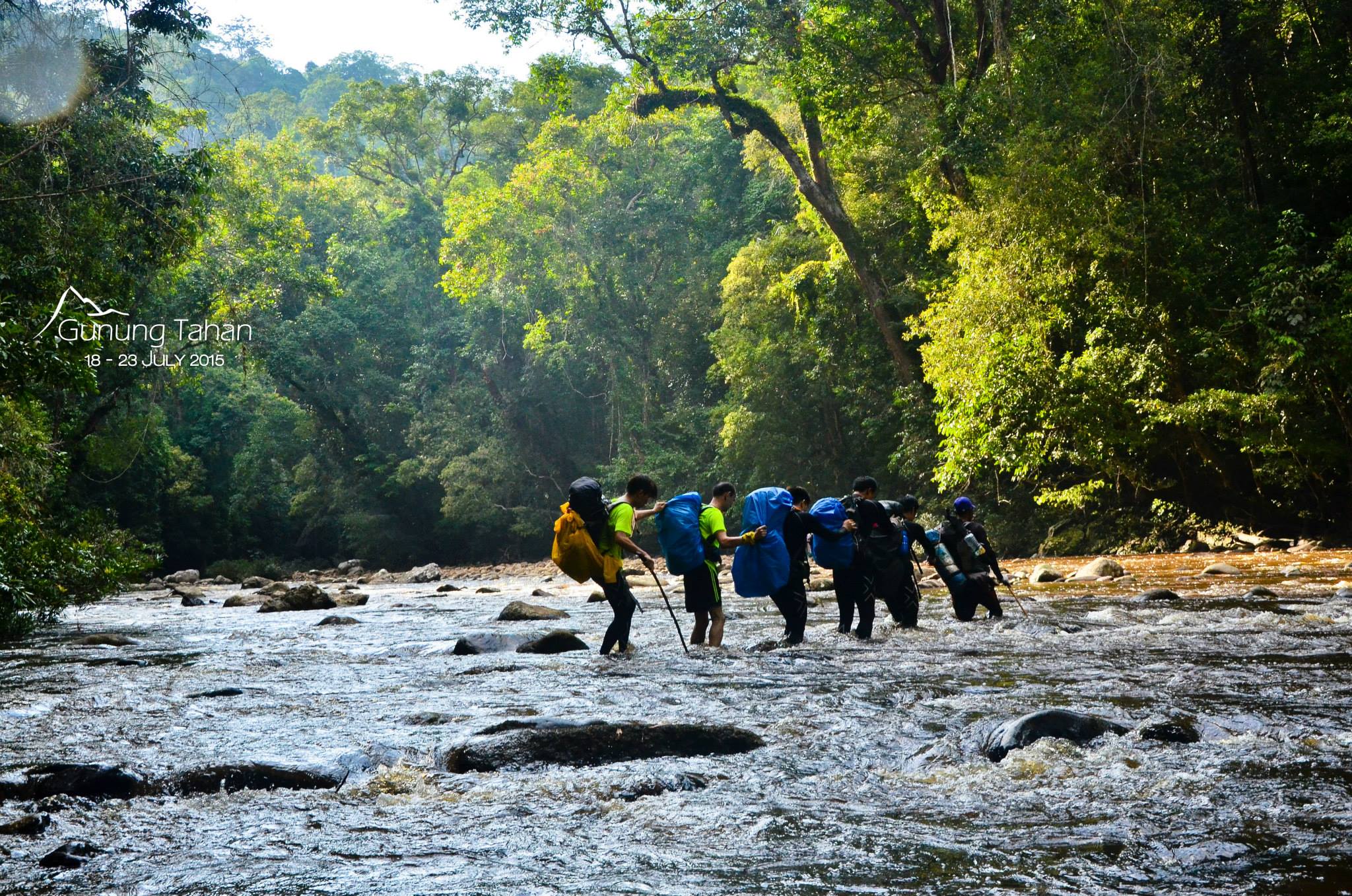 一大早,WC 5点Morning Call,6点集合,遇上不靠谱的司机我们应该7点才出发,晕!Jerantut前往Kuala Tahan 一点也不好受,不晓得是山路的关系还是司机的技术问题, 我好晕。。。。。好不容易挨到了Kuala Tahan,终于解脱。WC 办理了入山手续后,等待山导及背夫的同时我们在餐厅里喝了杯贵死人的Milo。山导到达后,我们摊开物品登记,11左右出发。应该是第一天的原故,一开始大家都很有冲劲,中途有点力不从心,开始越来越慢。。。 5小时后到达Melanti 营地,原本考虑一鼓作气的前往Kem Tengah,但是山导评估大家的情况后,认为不合适。大家各自搭帐篷,WC 忙着准备晚餐,我们就梳洗,净化水。晚上大家坐着聊天谈谈山里的趣事,满轻松的。