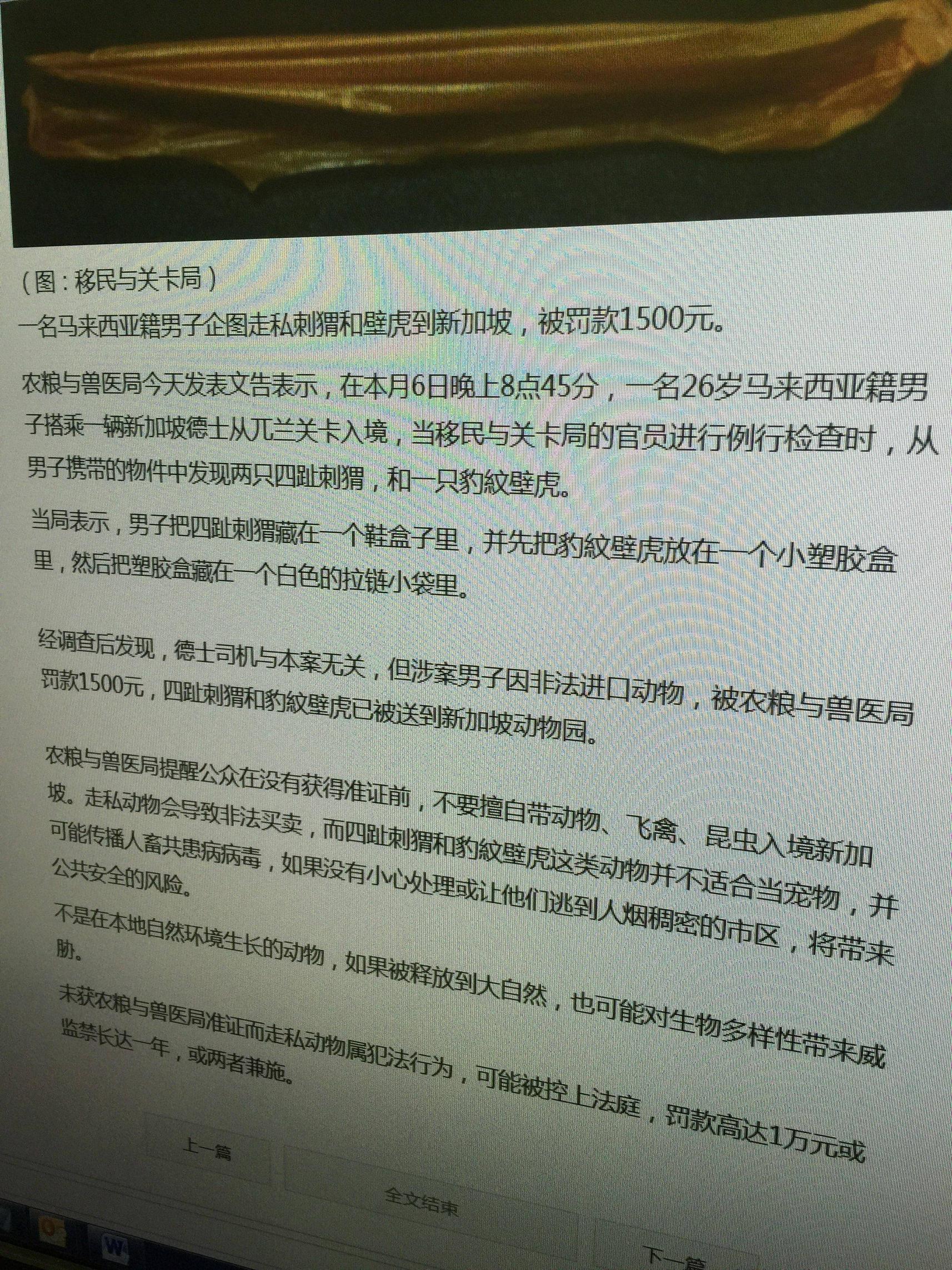 很多是从马来西亚走私过来的说说刺猬在坡是保护动物