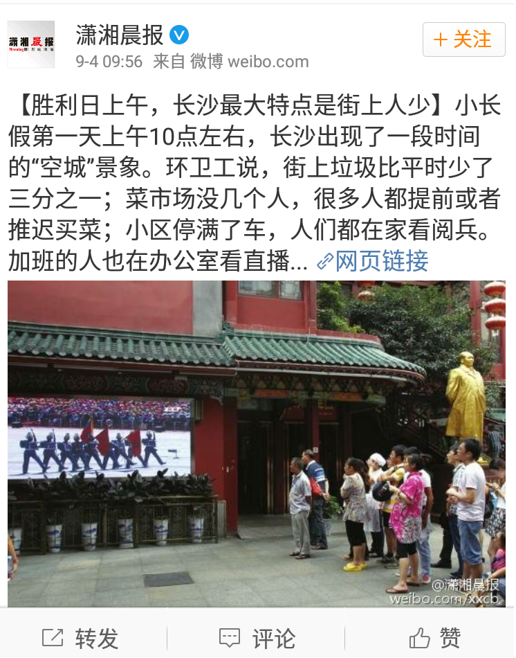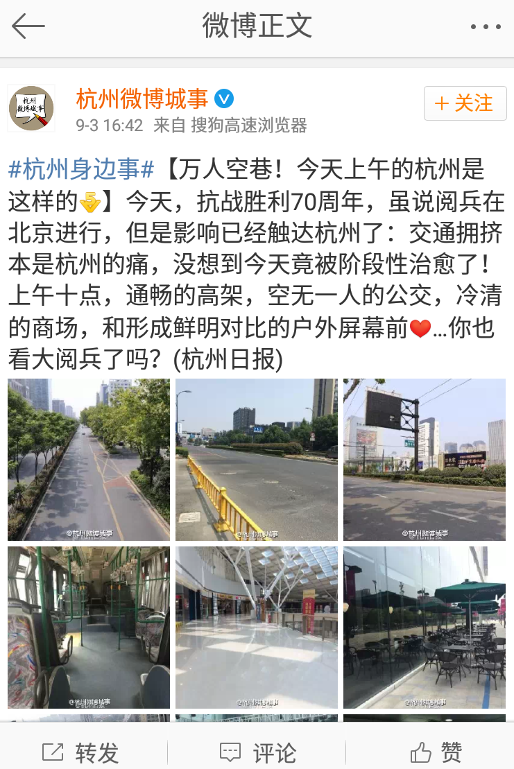 昨天上午国内各地万人空巷, 网友感叹唯一一个不堵车的节假日!都在家蹲着看阅兵呢!