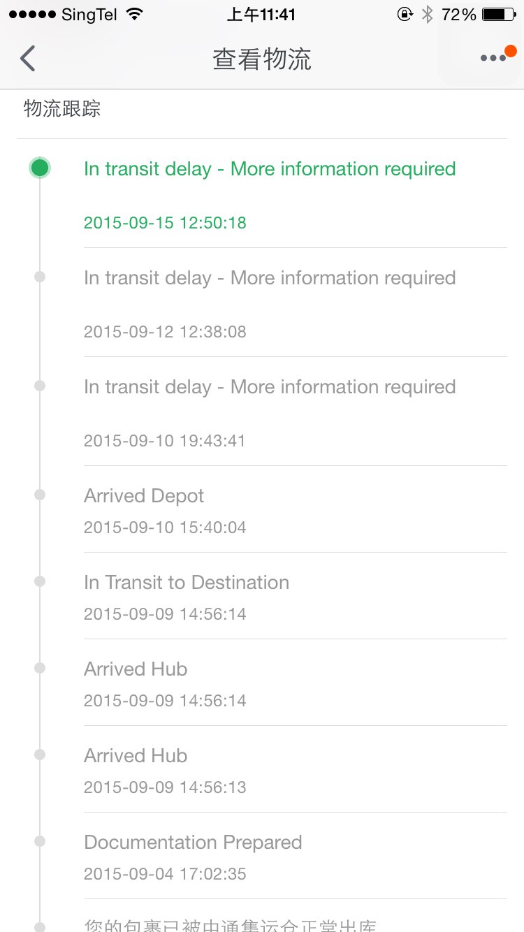 摸摸楼主,偶也中招了,8月底买的货,现在还没有出海关我的坡坡同事们也在焦急的等待中.我自己几个小件跟狮城帮团的早收到了.我查了一下,直运用的是中通,中通真是烂透顶了,仓库还拒收我的货物,而且也不退预收的运费.大家一起去投诉他们吧!我的坡坡同事们也在焦急的等待中.我自己几个小件跟狮城帮团的早收到了.我查了一下,直运用的是中通,中通真是烂透顶了,仓库还拒收我的货物,而且也不退预收的运费.大家一起去投诉他们吧!