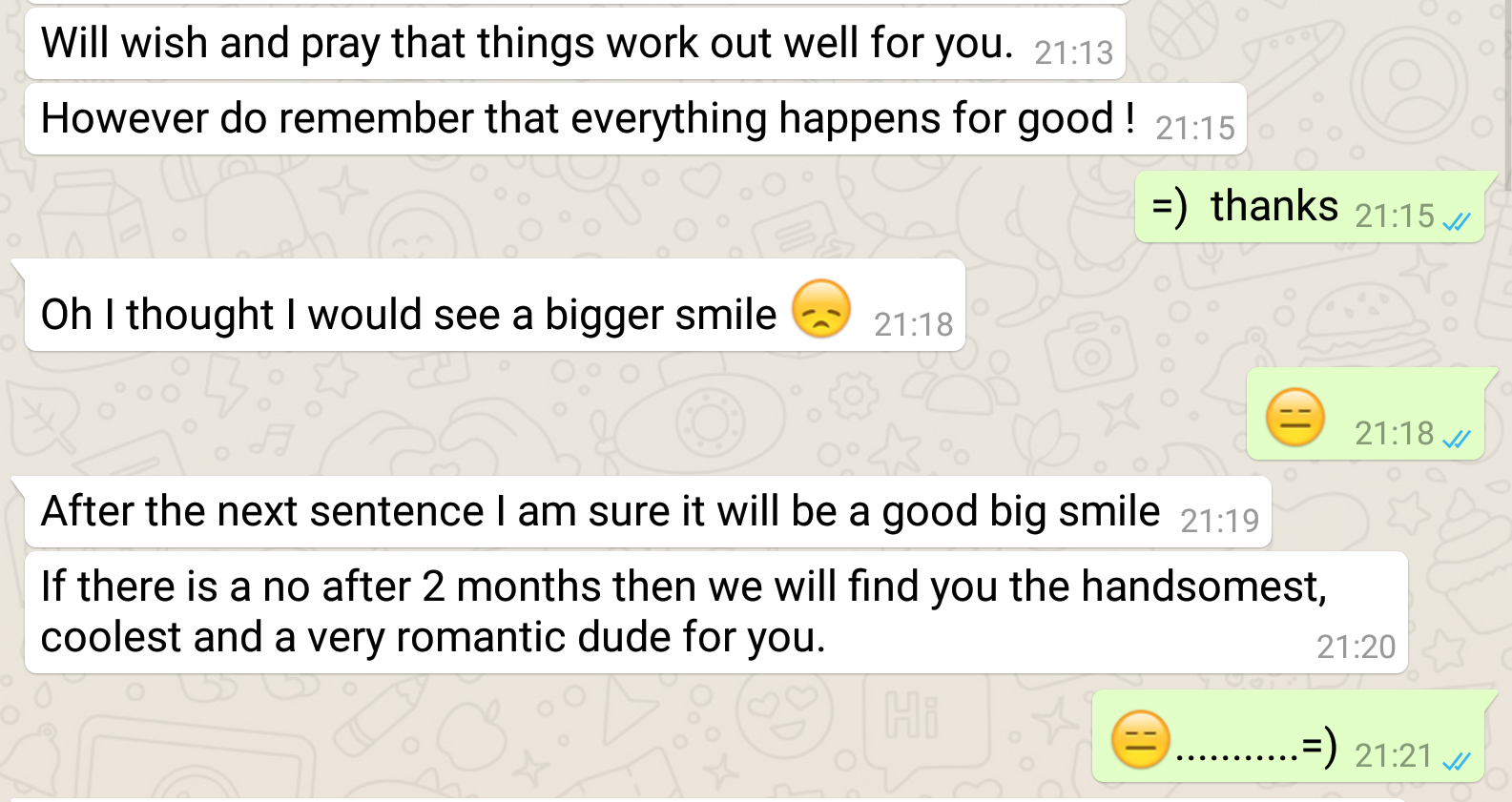 给一个长辈发了短信,被安慰地笑了。其实生活确实不是只有爱情,还有很多别的珍贵的东西。
