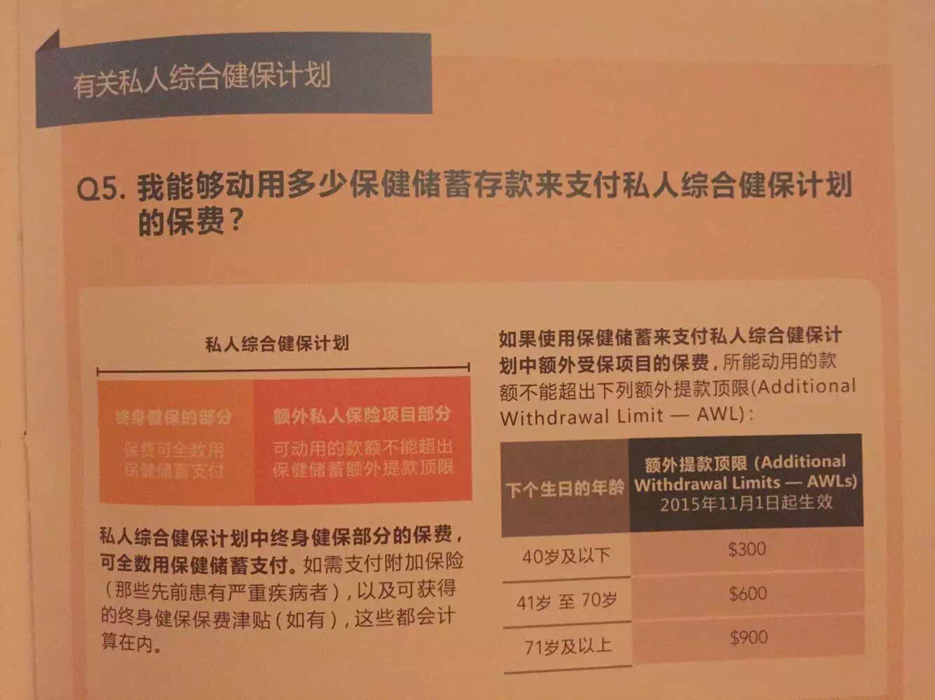 additional private insurance component(Aviva,aia,GE,Prudential,NTUC)每年的上限根据年龄不同会有所不同。40岁以下上限300,41-70岁上限600,71岁以上上限900(见附图)。