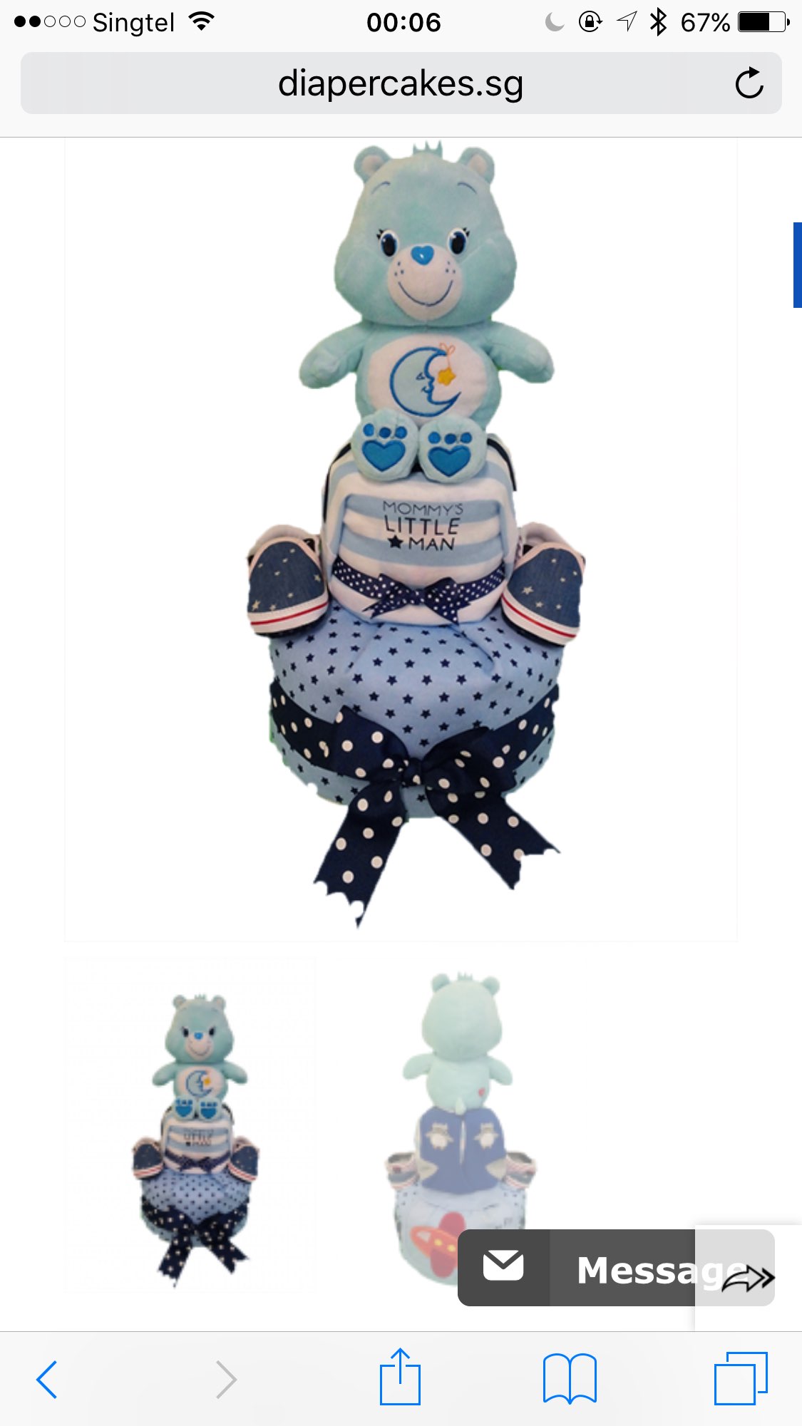 最近收到lg同事送的diaper cake,觉得有点意思http://diapercakes.sg