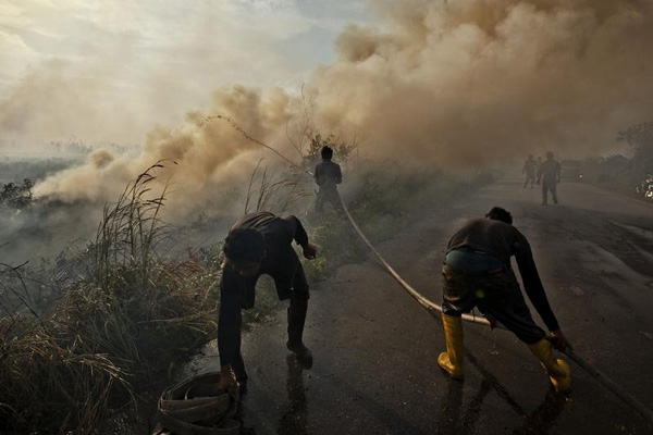 印尼还称,已不遗余力对付雾霾,包括派遣3700名军人、近8000名警员和4架水弹飞机协助灭火。除了采取执法行动之外,也在苏门答腊树林和河流构筑了一些蓄水池,方便取水灭火。应该很快能看到成效,需要多久呢?嗯,大概至少需要3年时间。 -