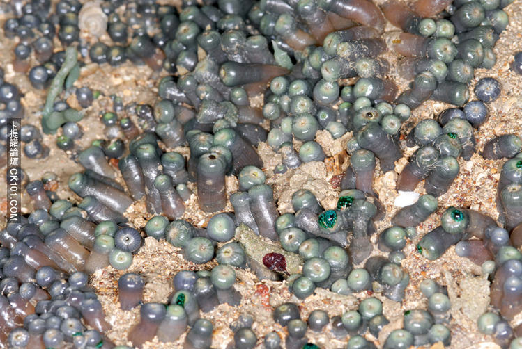 ▼相信海地瓜在海水上涨时随海水和海浪被冲到海滩,人们在退潮时发现该现象。