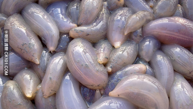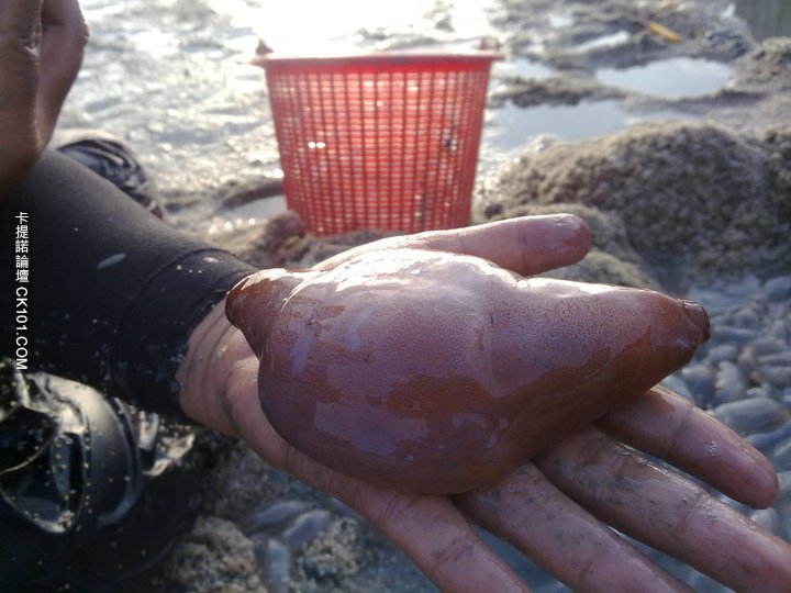 ▼海地瓜生长在泥中,若大浪冲击泥时,海地瓜就会随海浪漂浮出来