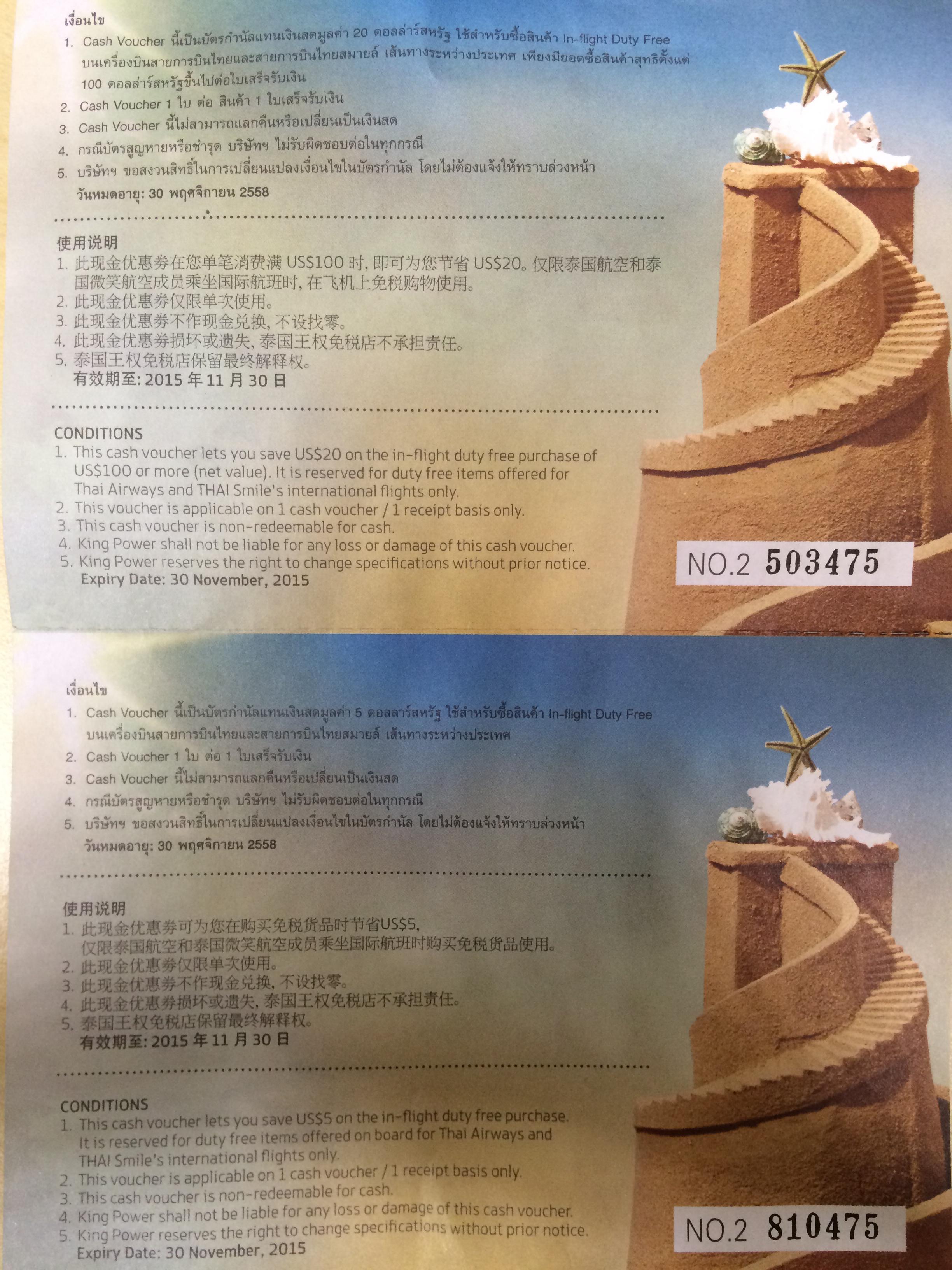 泰航机上购物cash voucher