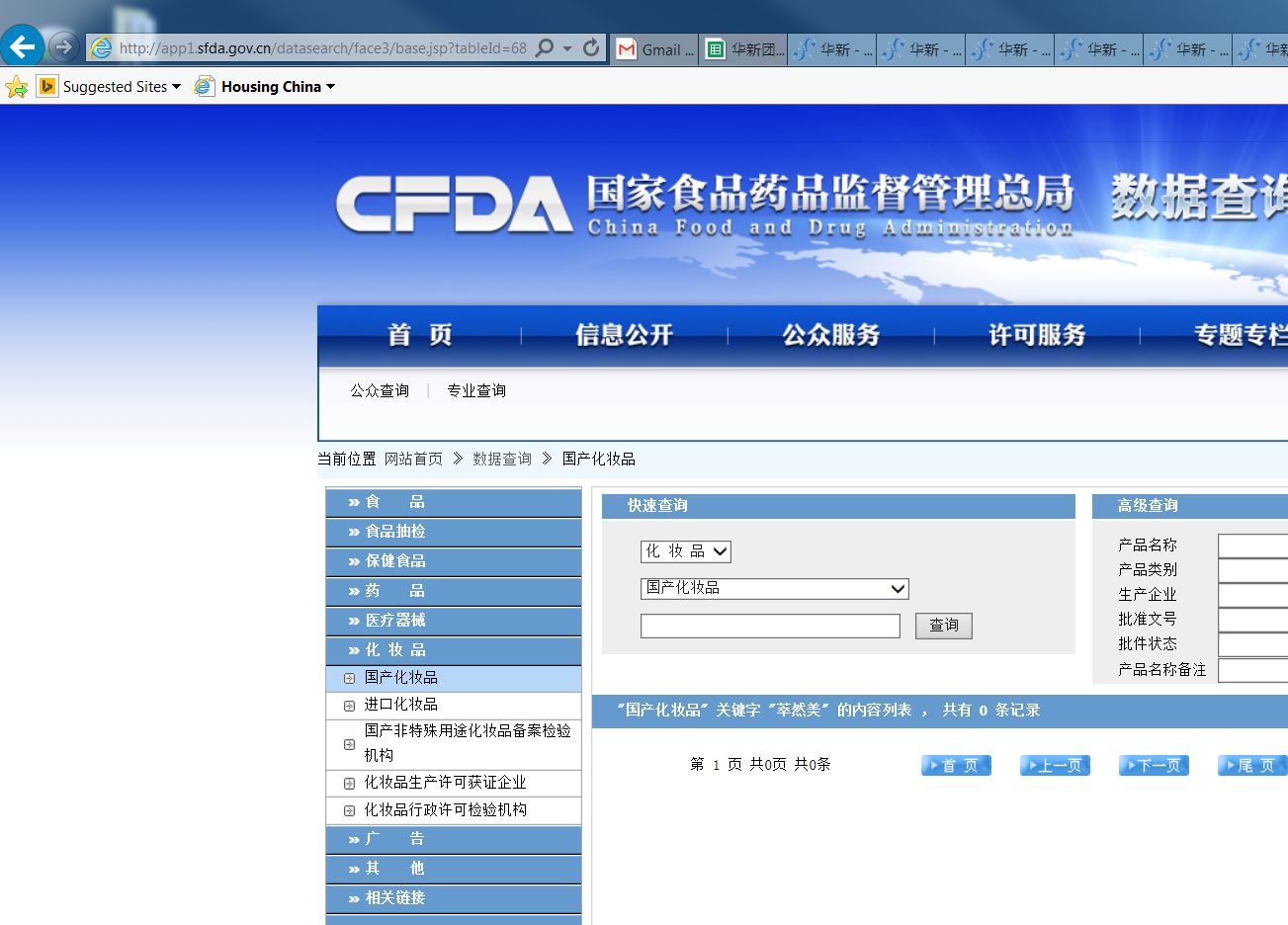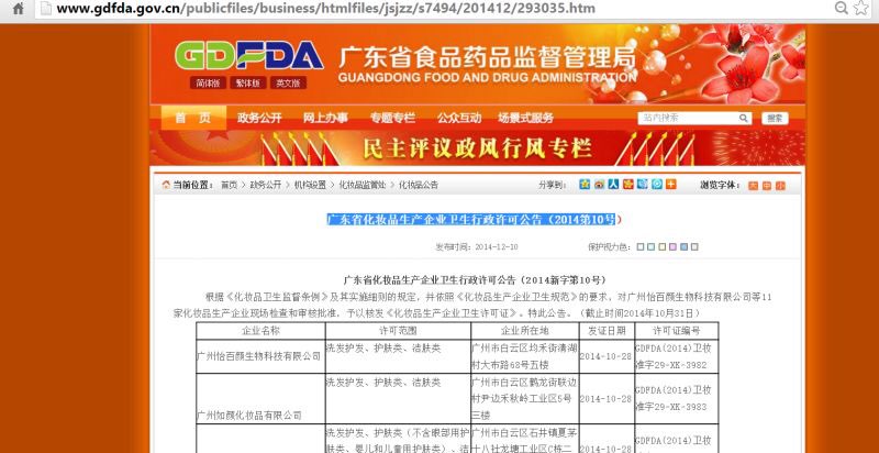 查询地址:http://app1.sfda.gov.cn/datasearch/face3/base.jsp?tableId=68&tableName=TABLE68&title=国产化妆品&bcId=138009396676753955941050804482