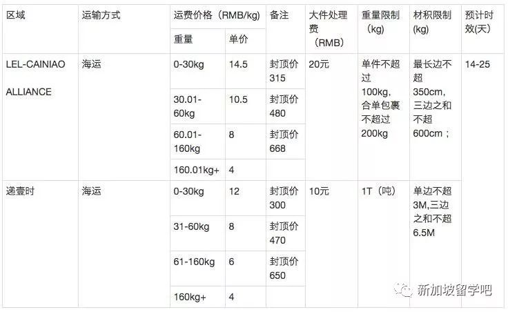 新加坡地区支持的淘宝官方物流合作商有五家,大家可以查看下表,以便了解各物流转运商在新加坡地区的运费价格以及包裹的材积限制: