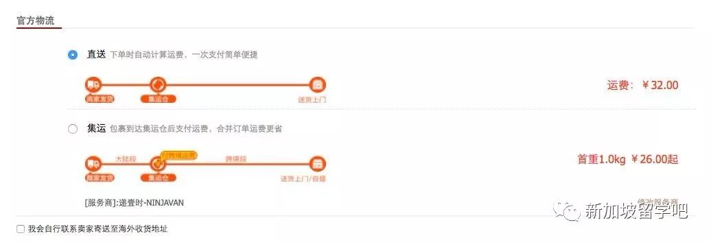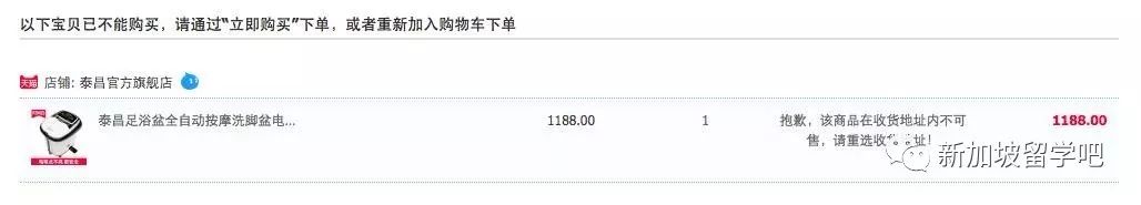 选购产品,点击下单,输入新加坡地址。这一系列动作完成后,如果心水的产品不接受海外运,淘宝会直接拒绝我们。