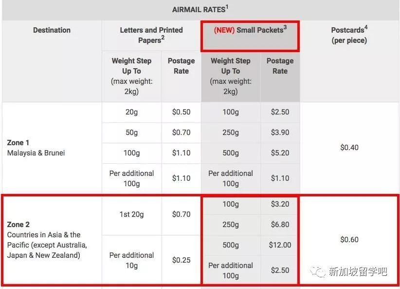 ▲ 图片来源于Singpost官方网站小包类 (小于2kg)