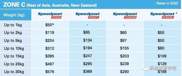 运输价格Speedpost Express最贵Speedpost Economy最便宜