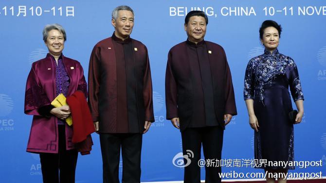 彭丽媛这次在新加坡,将和习近平主席一起,出席新加坡总理李显龙和夫人何晶举行的私人午宴。何晶曾在去年北京APEC峰会期间,和彭丽媛有着一次“服装对话”,在新加坡也被注意到。